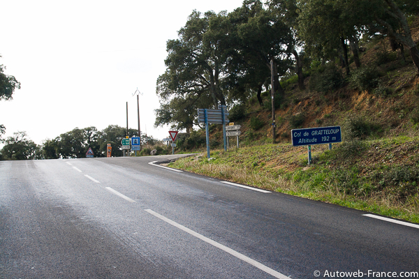 Les 3 km pour monter au col de Gratteloup font partie des plus tortueux de la N98, et vous allez vous régaler dans cette forêt de chênes-lièges typiques ! Le col est le point culminant de la N98, avec une altitude de seulement… 192m. On est loin des N6 et N7 ! 15 km plus loin on approche de l’aérodrome de la Mole, et on en termine avec les virages. Attention au radar quand même.